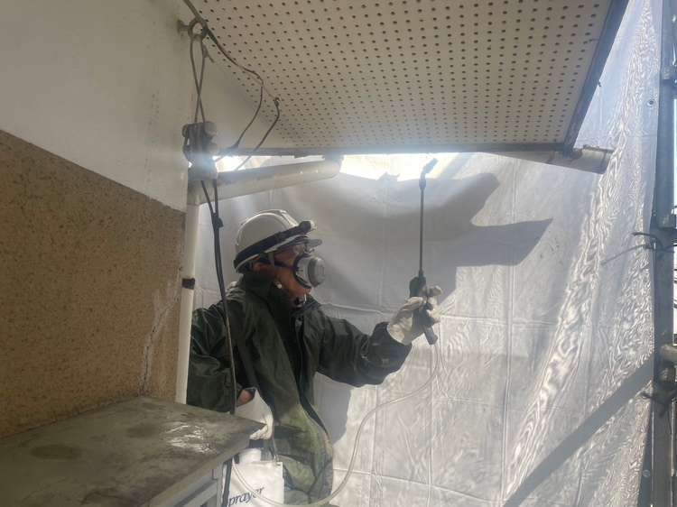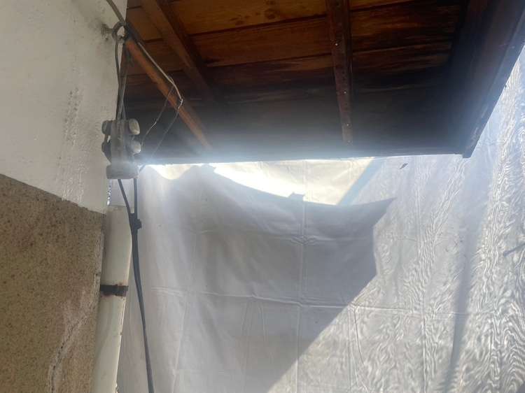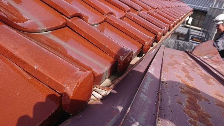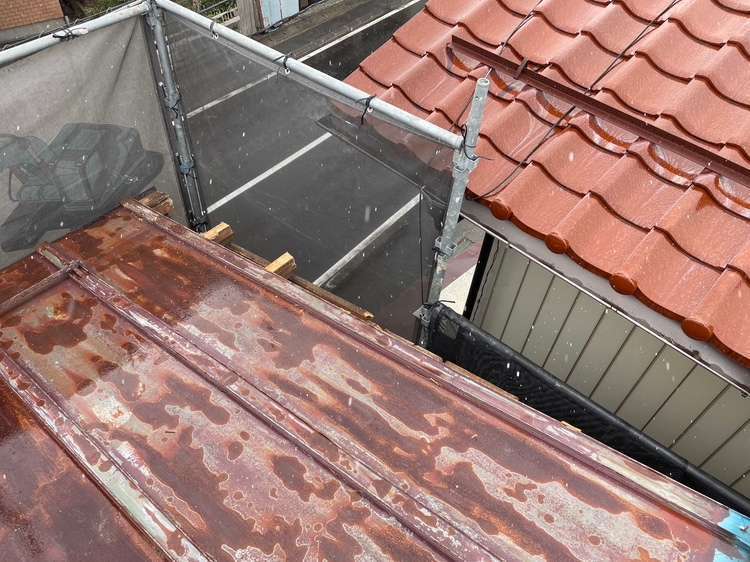 倉庫の軒先が隣地屋根の下に重なっていたので、慎重に手バラシしてからの解体となりました。